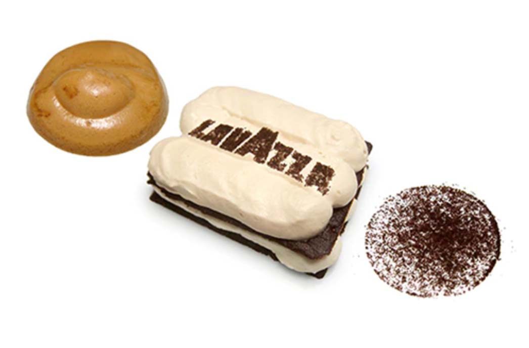 Dieses Karamellgelee mit seiner besonderen kristallisierten Textur auf Cold-Brew-Basis (kalte Kaffee-Infusion) ist eine Hommage an das Kaffeeuniversum und wurde bei der Veranstaltung Identità Golose 2015 präsentiert. Es trägt die Unterschrift der großen, internationalen Feinschmeckerkonditorin Loretta Fanella.